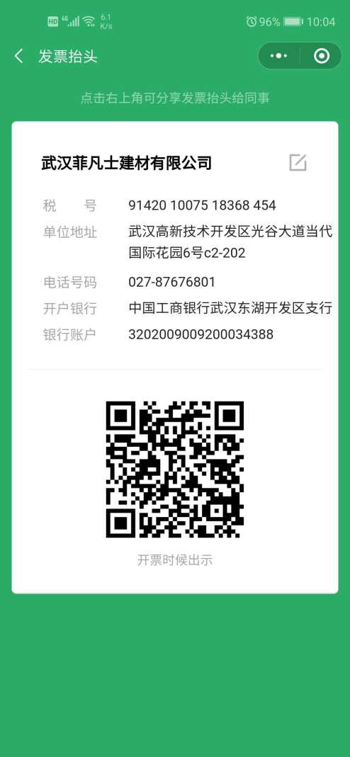 開戶名:武漢菲凡士建材有限公司