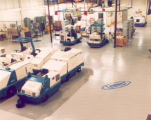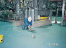 6.用菲凡士地坪色漆(A:B=1:1)滾涂,達到色澤一致。在墻邊、柱邊、機器旁邊應用毛刷小心涂刷,不能用滾筒涂,以防弄臟墻邊或機器;